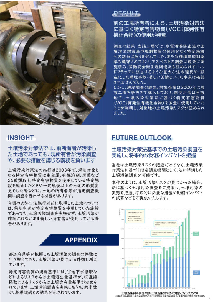 PDFはこちらから 環境デューデリジェンス事例レポートvol.1『土壌汚染リスク』